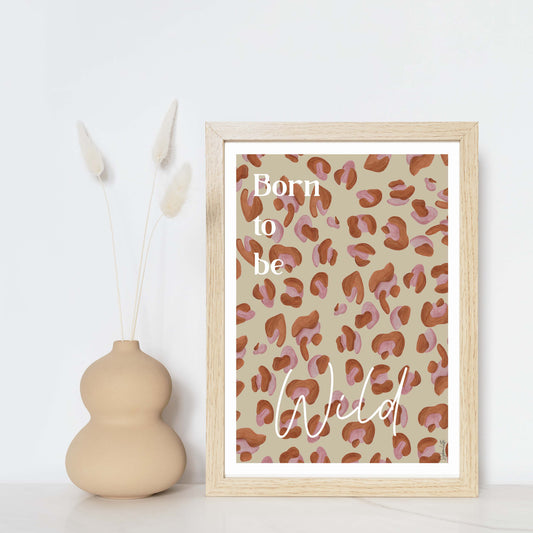 Affiche Born to be Wild - Léopard Beige Rose